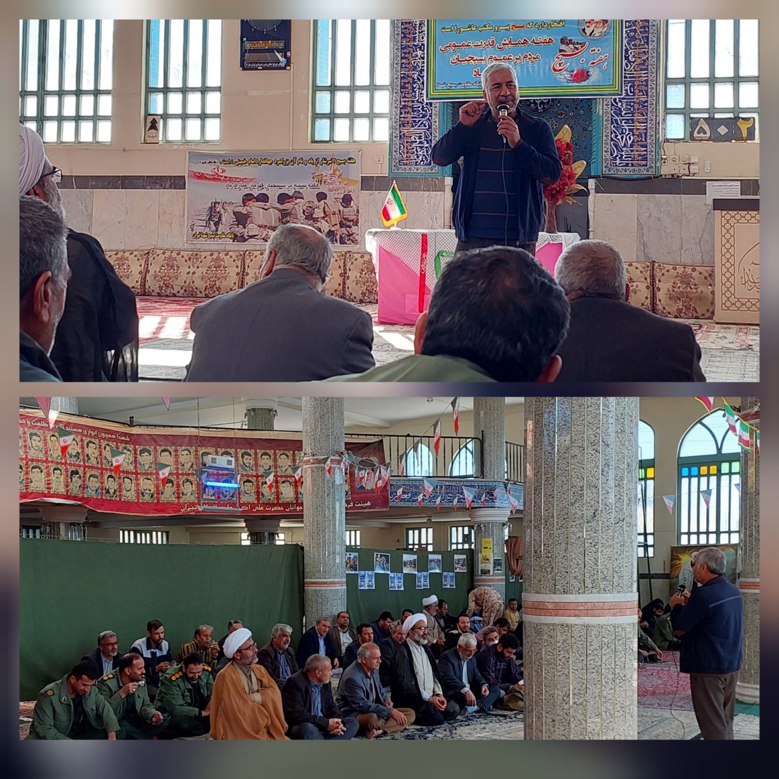 برگزاری نماز وحدت ادارات در هفته بسیج با حضورامام جمعه، ائمه جماعات ،پیشکسوتان بسیج ، مسئولین وکارکنان ادارات شهرستان واجرای برنامه خاطره گویی از عملیات فاو توسط مسئول اسبق کانون بسیج هنرمندان، جانباز ورزمنده دفاع مقدس وهنرمند تئاترجناب آقای رضا دادخواه در محل مسجد سیدالشهداء شهر تیران